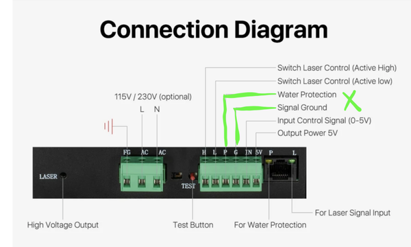 Geen water koeling = geen power op de lasertube